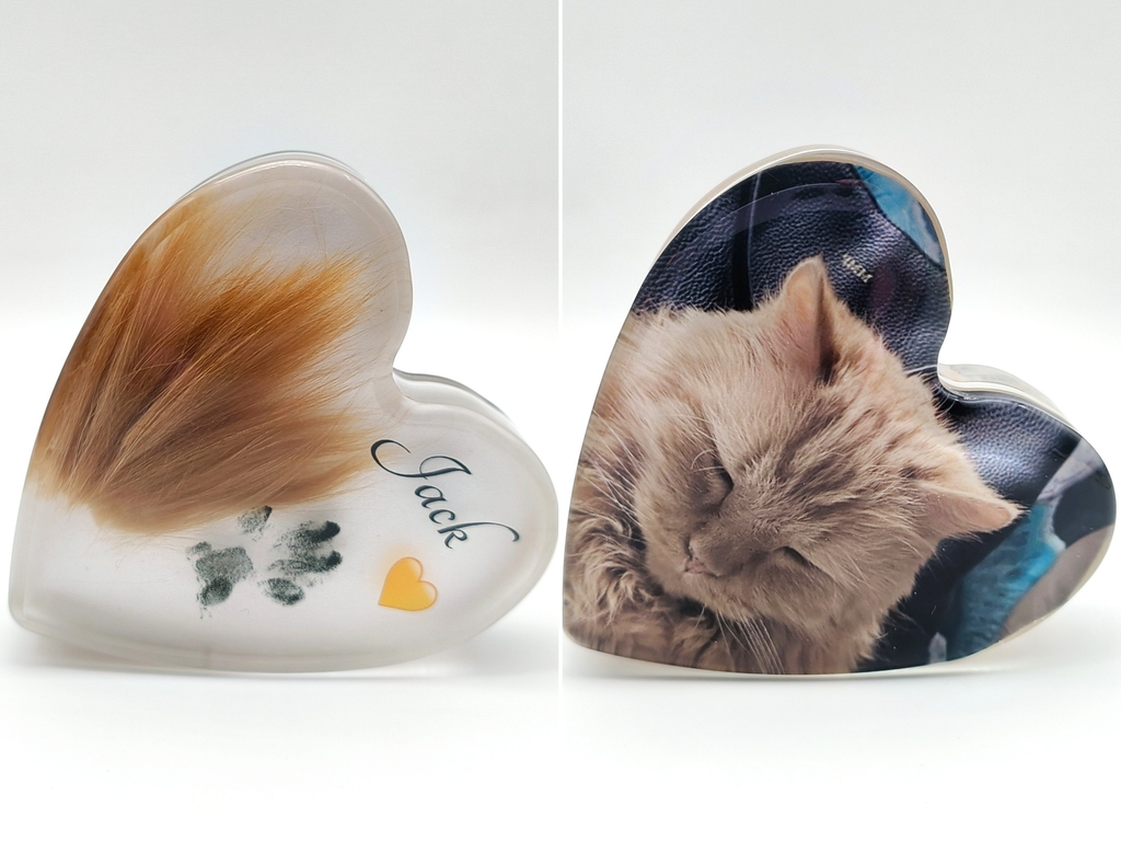 Honour the memory of your beloved pet with this handcrafted resin heart keepsake. Made with care and respect, this piece allows you to keep a part of your companion close in a beautiful and lasting way.