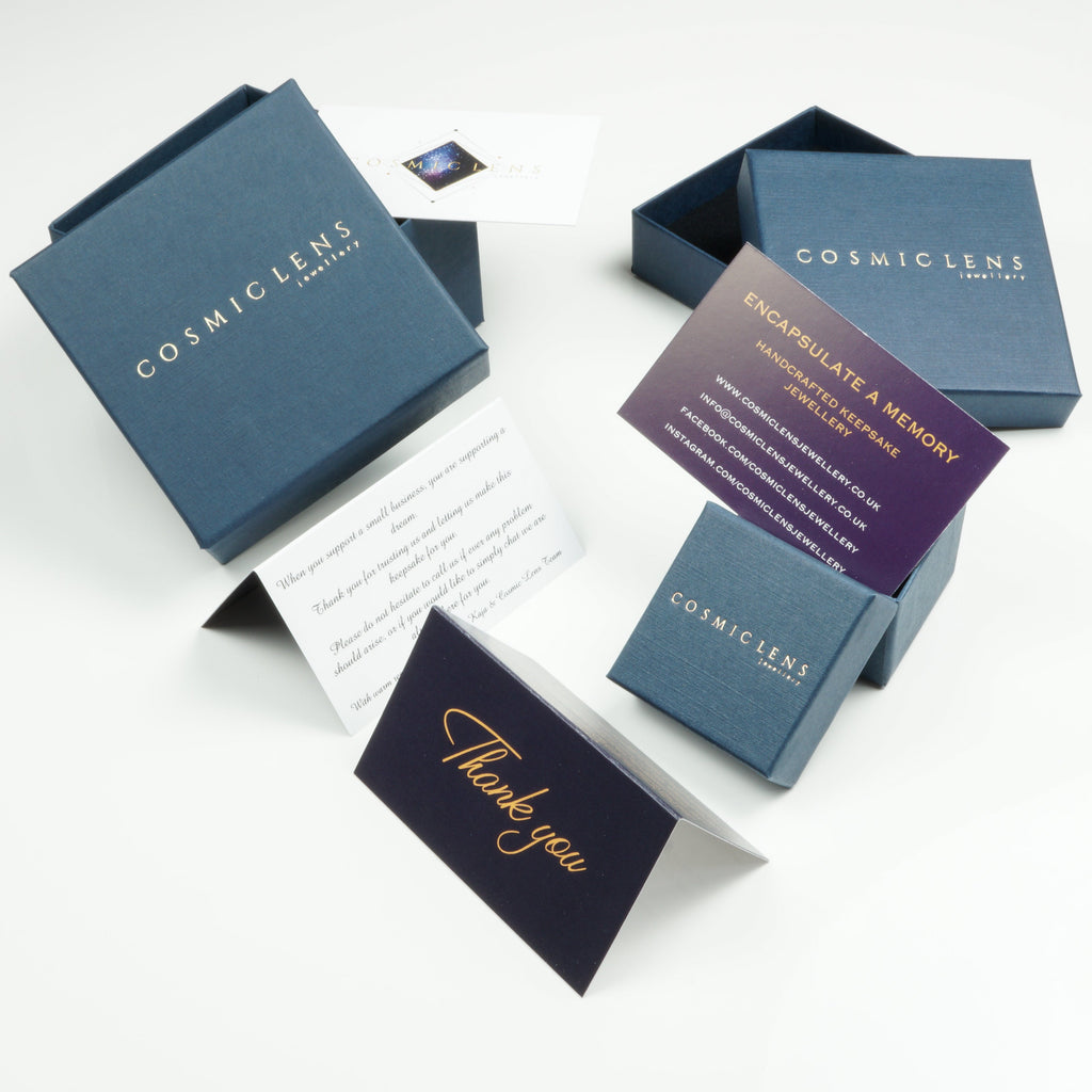 Our jewellery boxes are already prepared for gift-giving. However, we can add gift wrap and include a note. Please let us know via email if you would like that.