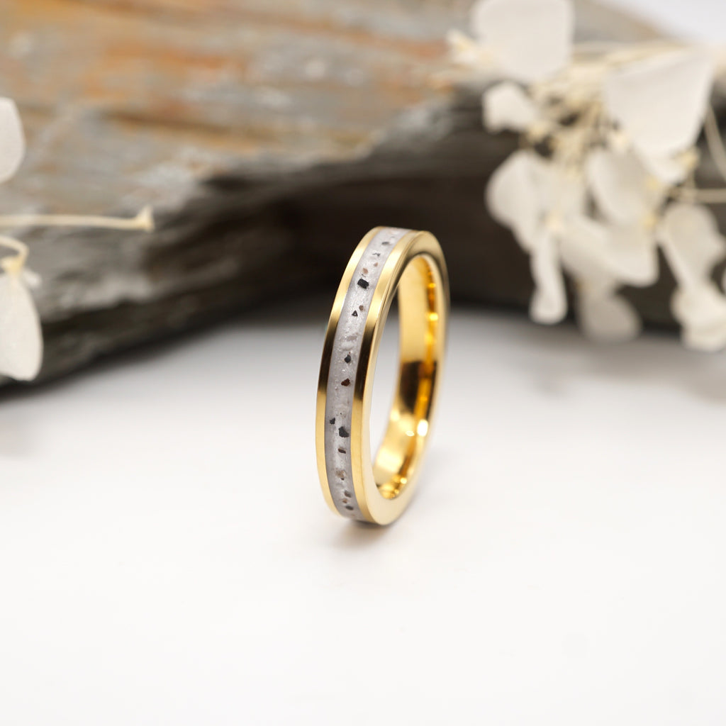 This unique memorial Inlay Ring with Ashes is made of durable gold or rose gold plated tungsten carbide and premium crystal clear resin. Carefully handcrafted with exceptional care with regard to the memory of our loved ones. The beauty lies in its eye-catching colourful complexity. One of a kind piece of jewellery that holds sentimental value for its owner while preserving those precious moments of the past.